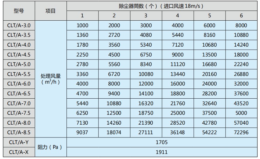 CLT/A系列旋風(fēng)除塵器(分離器)選型技術(shù)參數(shù):